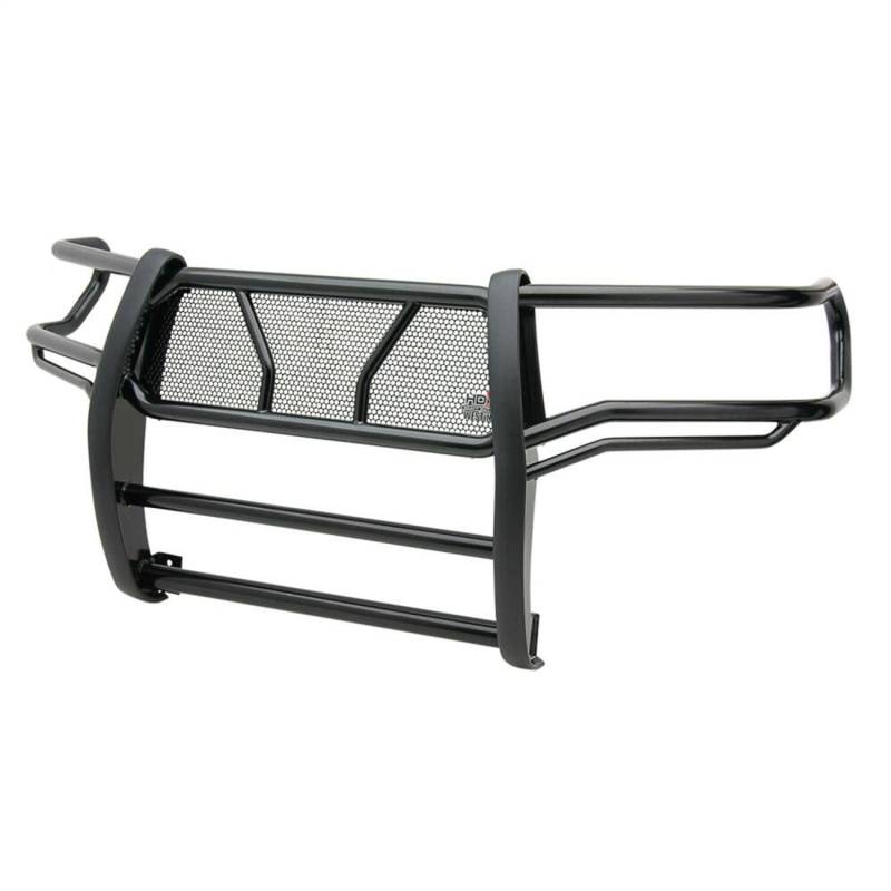 The HDX Grille Guard is the ultimate in extreme truck gear. Its a fully welded 1-piece grille guard that features full wraparound wings made of heavy duty 2in. diameter tube. Uprights are finished and protected with extra wide rubber that is 1/8in. thick and 2 3/4in. wide resulting in a solid clean look. The full punch plate grille protects the vehicles grille area. HDX Grille Guards are available in stainless and black powder coat finish.