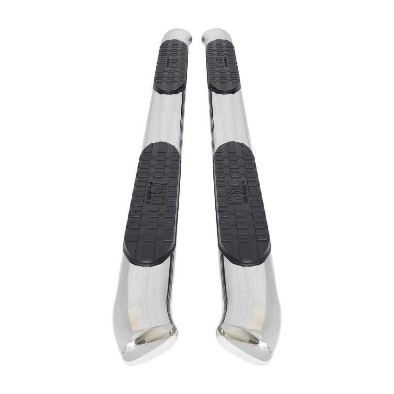 Westins Pro Traxx 5 Oval Nerf Step Bars feature a 5in. oval tube with a heavy-duty step pad that provides a wider and more secure step area. They feature 30 factory style bends that have seamless domed ends so there are no end-caps or exposed bolt heads. Applications are bolt-on installation.