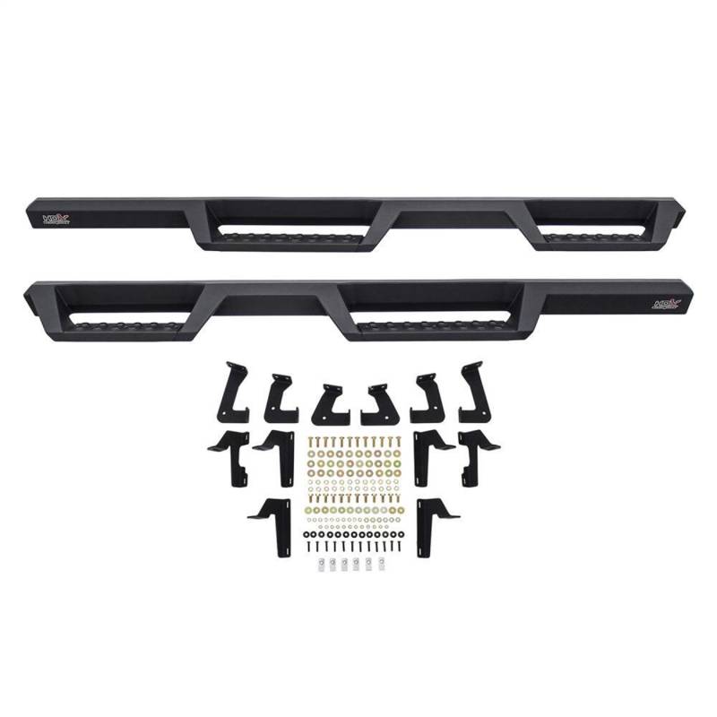 Westins HDX Drop Nerf Step Bars provide the rugged look and function that truck owners need and want. They feature a solid 1-piece steel construction and heavy duty punch plates creating high traction step areas. The HDX Drop Nerf Step Bars also feature Westins notched bar design which provides more than 2in. of additional toe/heel placement versus competitive brands. Available in a textured black finish that complements Westin HDX Bumpers. The HDX Drop Steps have vehicle specific applications and include a vehicle specific mount kit, installation hardware and instructions.