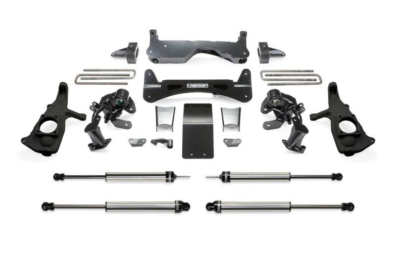 Fabtechs cutting edge RTS(TM) system has now been developed for the all new GM HD platform. The 6 RTS(TM) utilizes a patent pending bracket system that keep the torsion bars raised up, in the stock location. This feature provides superior ground clearance at the frame as there are no torsion bars hanging down to become high centered on or damaged when offroading.. The 6 RTS(TM) system has been designed with unitized bracketry to retain the four front compression stops of the vehicle as GM intended. This distributes impact loads across a wide section of the frame rather than at a single point.High arched crossmembers and front differential skid plate are constructed of 1/4 thick steel to resist bending from hard front suspension impacts. Only 1/4 thick steel provides the rigidity and strength necessary to relocate the torsion bars, bump stops and lower control arms properly. Minimal heavy duty bracketry allow for a fast installation time with only two holes to drill and no cutting of the front diff housing. The 6 RTS(TM) system allows the use of both 18 and 20 diameter wheels.