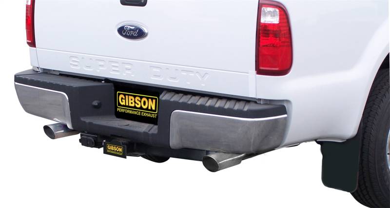 For the enthusiast who wants an awesome look and aggressive throaty sound this Dual Split Cat back exhaust is for you. Gibson Exhaust Systems decrease backpressure and produce more torque and increased horsepower. Typical gains average of 15-20 horsepower. Stainless dual Tip exit straight out the back. Works with most bumpers, roll pans and trailer hitches. Exhaust sound is louder under towing conditions. Hassle Free bolt- on installation. No welding required. Backed by a Lifetime Limited Warranty.