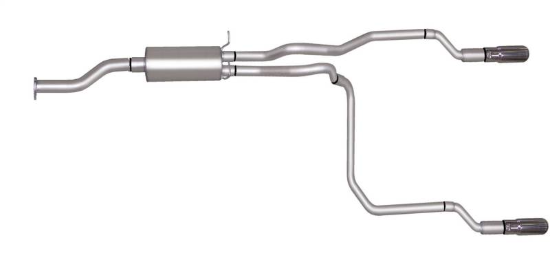 For the enthusiast who wants an awesome look and aggressive throaty sound this Dual Split Cat back exhaust is for you. Gibson Exhaust Systems decrease backpressure and produce more torque and increased horsepower. Typical gains average of 15-20 horsepower. Stainless dual Tip exit straight out the back. Works with most bumpers, roll pans and trailer hitches. Exhaust sound is louder under towing conditions. Hassle Free bolt- on installation. No welding required. Backed by a Lifetime Limited Warranty.