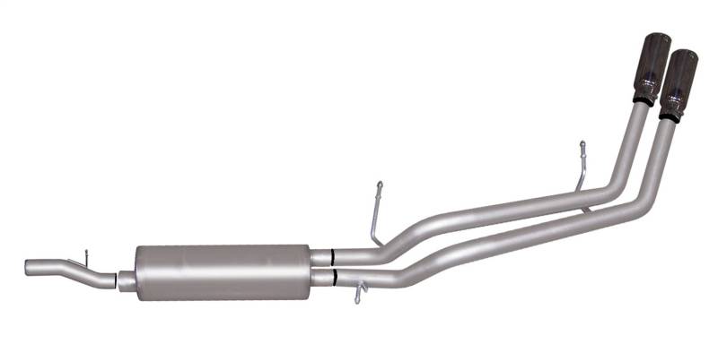 If youre looking to add a little style to your Truck or SUV and want to keep the exhaust from affecting your tow trailer, this Dual Cat back Exhaust System is for you, exiting behind the rear tire for a look that sets your vehicle apart on the street or in the dirt. Hassle free, bolt-on installation with professional looking results. No welding required. Backed by a Lifetime Limited Warranty. Gibson dual sport exhaust offers a powerful authoritative deep exhaust tone with no annoying noise inside the cab. Dyno tested to assure increased horsepower and produce more torque. Average horsepower gains are 10-15 and 15-20lb-ft of increase torque.