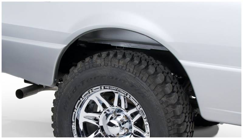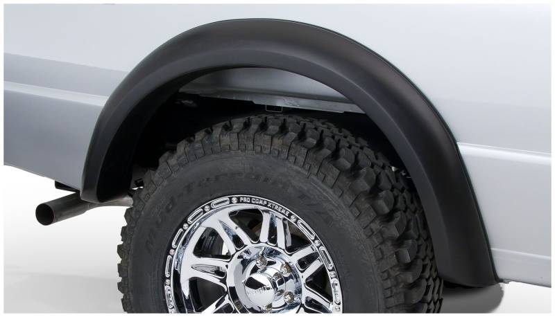 You've equipped your vehicle with oversize wheels and tires for serious off-road traction and clearance. Now you need extra tire coverage to protect your rig's body and maybe even comply with local laws. Bushwacker Extend-A-Fender Flares deliver premium-grade protection and style matched to oversized tires, yet as tough as they are, they go on easily with no drilling required. You can install them in minutes and enjoy them for years. Our exclusive Dura-Flex 2000 material is designed for added durability and flexibility with built-in UV protection. Your Extend-A-Fender Flares resist chalking, cracking, and warping, whether you leave them with their OEM-style matte black finish or paint them for a totally personalized look. Either way, your truck will look factory-equipped for your off-road tires. Extend-A-Fender Flares go on easy, perform tough, and look great.