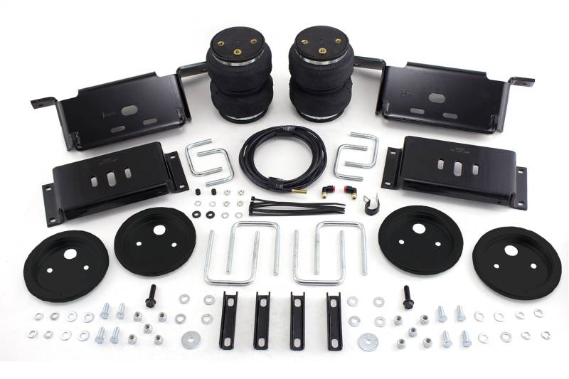 LoadLifter 5000 ULTIMATE adjustable air spring kits feature all of the benefits of our heaviest rated air spring with the addition of an internal jounce bumper inside the spring for the ultimate in ride comfort. An Air Lift exclusive product! Fits vehicles with in-bed hitches. Tow and haul the heaviest loads with safety and comfort with LoadLifter 5000 ULTIMATE. Works with vehicle's leaf springs to provide up to 5,000 lbs. of rear load leveling capacity and keeps the vehicle riding stable, level and comfortable whether loaded or unloaded. Fully adjustable from 5 to 100 PSI. The closed-cell urethane foam jounce bumper inside the ULTIMATE air springs provide a cushion of air that absorbs shock, eliminates harsh jarring on rough roads and protects vehicles carrying heavy loads. Never bottom out again with the ULTIMATE! LoadLifter 5000 ULTIMATE air springs are maintenance free! Safely run with zero air pressure because of the internal jounce bumper. Replaces factory jounce bumper that is sometimes removed when adding air springs. Requires no drilling into frame! Includes industry-exclusive 60 Day No Questions Money Back Guarantee! Includes the most comprehensive Lifetime Warranty in the industry---covers all kit contents including brackets, fittings and air line. Air springs are built like a tire and are reinforced by durable, 2-ply fabric for maximum strength. Exclusive upper and lower roll plates included. Protect the springs from sharp edges, such as brackets or the frame. The kit includes 2 air springs, brackets, air lines, Schrader valve and all of the hardware needed for installation. Includes fully illustrated instruction manual. Add an Air Lift on-board air compressor system to inflate and deflate air springs with the touch of a button from inside or outside of the vehicle.