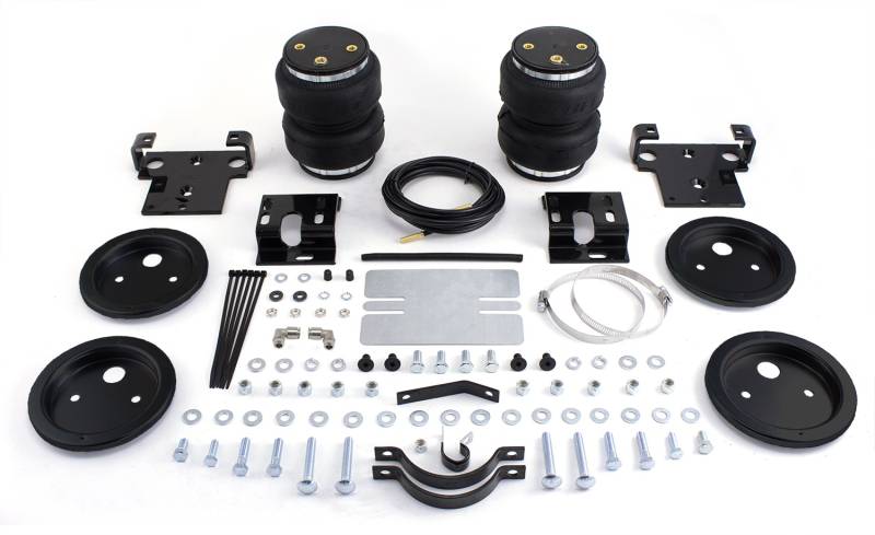 LoadLifter 5000 ULTIMATE adjustable air spring kits feature all of the benefits of our heaviest rated air spring with the addition of an internal jounce bumper inside the spring for the ultimate in ride comfort. An Air Lift exclusive product! Fits vehicles with in-bed hitches. Tow and haul the heaviest loads with safety and comfort with LoadLifter 5000 ULTIMATE. Works with vehicle's leaf springs to provide up to 5,000 lbs. of front load leveling capacity and keeps the vehicle riding stable, level and comfortable whether loaded or unloaded. Fully adjustable from 5 to 100 PSI. The closed-cell urethane foam jounce bumper inside the ULTIMATE air springs provide a cushion of air that absorbs shock, eliminates harsh jarring on rough roads and protects vehicles carrying heavy loads. Never bottom out again with the ULTIMATE! LoadLifter 5000 ULTIMATE air springs are maintenance free! Safely run with zero air pressure because of the internal jounce bumper. Replaces factory jounce bumper that is sometimes removed when adding air springs. Includes industry-exclusive 60 Day No Questions Money Back Guarantee! Includes the most comprehensive Lifetime Warranty in the industry---covers all kit contents including brackets, fittings and air line. Air springs are built like a tire and are reinforced by durable, 2-ply fabric for maximum strength. Exclusive upper and lower roll plates included. Protect the springs from sharp edges, such as brackets or the frame. The kit includes 2 air springs, brackets, air lines, Schrader valve and all of the hardware needed for installation. Includes fully illustrated instruction manual. Add an Air Lift on-board air compressor system to inflate and deflate air springs with the touch of a button from inside or outside of the vehicle.