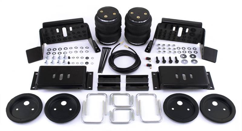 LoadLifter 5000 ULTIMATE adjustable air spring kits feature all of the benefits of our heaviest rated air spring with the addition of an internal jounce bumper inside the spring for the ultimate in ride comfort. An Air Lift exclusive product! Fits vehicles with in-bed hitches. Tow and haul the heaviest loads with safety and comfort with LoadLifter 5000 ULTIMATE. Works with vehicle's leaf springs to provide up to 5,000 lbs. of front load leveling capacity and keeps the vehicle riding stable, level and comfortable whether loaded or unloaded. Fully adjustable from 5 to 100 PSI. The closed-cell urethane foam jounce bumper inside the ULTIMATE air springs provide a cushion of air that absorbs shock, eliminates harsh jarring on rough roads and protects vehicles carrying heavy loads. Never bottom out again with the ULTIMATE! LoadLifter 5000 ULTIMATE air springs are maintenance free! Safely run with zero air pressure because of the internal jounce bumper. Replaces factory jounce bumper that is sometimes removed when adding air springs. Includes industry-exclusive 60 Day No Questions Money Back Guarantee! Includes the most comprehensive Lifetime Warranty in the industry---covers all kit contents including brackets, fittings and air line. Air springs are built like a tire and are reinforced by durable, 2-ply fabric for maximum strength. Exclusive upper and lower roll plates included. Protect the springs from sharp edges, such as brackets or the frame. The kit includes 2 air springs, brackets, air lines, Schrader valve and all of the hardware needed for installation. Includes fully illustrated instruction manual. Add an Air Lift on-board air compressor system to inflate and deflate air springs with the touch of a button from inside or outside of the vehicle.