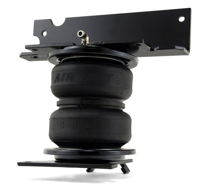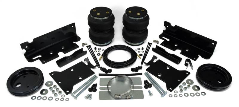 LoadLifter 5000 ULTIMATE adjustable air spring kits feature all of the benefits of our heaviest rated air spring with the addition of an internal jounce bumper inside the spring for the ultimate in ride comfort. An Air Lift exclusive product. Fits vehicles with in-bed hitches. Tow and haul the heaviest loads with safety and comfort with LoadLifter 5000 ULTIMATE. Works with vehicle's leaf springs to provide up to 5,000 lbs. of rear load leveling capacity and keeps the vehicle riding stable, level and comfortable whether loaded or unloaded. Fully adjustable from 5 to 100 PSI. The closed-cell urethane foam jounce bumper inside the ULTIMATE air springs provide a cushion of air that absorbs shock, eliminates harsh jarring on rough roads and protects vehicles carrying heavy loads. LoadLifter 5000 ULTIMATE air springs are maintenance free. Safely run with zero air pressure because of the internal jounce bumper. Replaces factory jounce bumper that is sometimes removed when adding air springs. Requires no drilling into frame. Includes industry-exclusive 60 Day No Questions Money Back Guarantee. Includes the most comprehensive Lifetime Warranty in the industry---covers all kit contents including brackets, fittings and air line. Air springs are built like a tire and are reinforced by durable, 2-ply fabric for maximum strength. Exclusive upper and lower roll plates included. Protect the springs from sharp edges, such as brackets or the frame. The kit includes 2 air springs, brackets, air lines, Schrader valve and all of the hardware needed for installation. Includes fully illustrated instruction manual. Add an Air Lift on-board air compressor system to inflate and deflate air springs with the touch of a button from inside or outside of the vehicle.