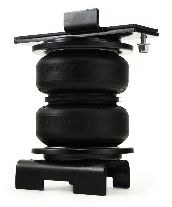 LoadLifter 5000 ULTIMATE adjustable air spring kits feature all of the benefits of our heaviest rated air spring with the addition of an internal jounce bumper inside the spring for the ultimate in ride comfort. An Air Lift exclusive product! Fits vehicles with in-bed hitches. Tow and haul the heaviest loads with safety and comfort with LoadLifter 5000 ULTIMATE. Works with vehicle's leaf springs to provide up to 5,000 lbs. of rear load leveling capacity and keeps the vehicle riding stable, level and comfortable whether loaded or unloaded. Fully adjustable from 5 to 100 PSI. The closed-cell urethane foam jounce bumper inside the ULTIMATE air springs provide a cushion of air that absorbs shock, eliminates harsh jarring on rough roads and protects vehicles carrying heavy loads. Never bottom out again with the ULTIMATE! LoadLifter 5000 ULTIMATE air springs are maintenance free! Safely run with zero air pressure because of the internal jounce bumper. Replaces factory jounce bumper that is sometimes removed when adding air springs. Requires no drilling into frame! Includes industry-exclusive 60 Day No Questions Money Back Guarantee! Includes the most comprehensive Lifetime Warranty in the industry---covers all kit contents including brackets, fittings and air line. Air springs are built like a tire and are reinforced by durable, 2-ply fabric for maximum strength. Exclusive upper and lower roll plates included. Protect the springs from sharp edges, such as brackets or the frame. The kit includes 2 air springs, brackets, air lines, Schrader valve and all of the hardware needed for installation. Includes fully illustrated instruction manual. Add an Air Lift on-board air compressor system to inflate and deflate air springs with the touch of a button from inside or outside of the vehicle.