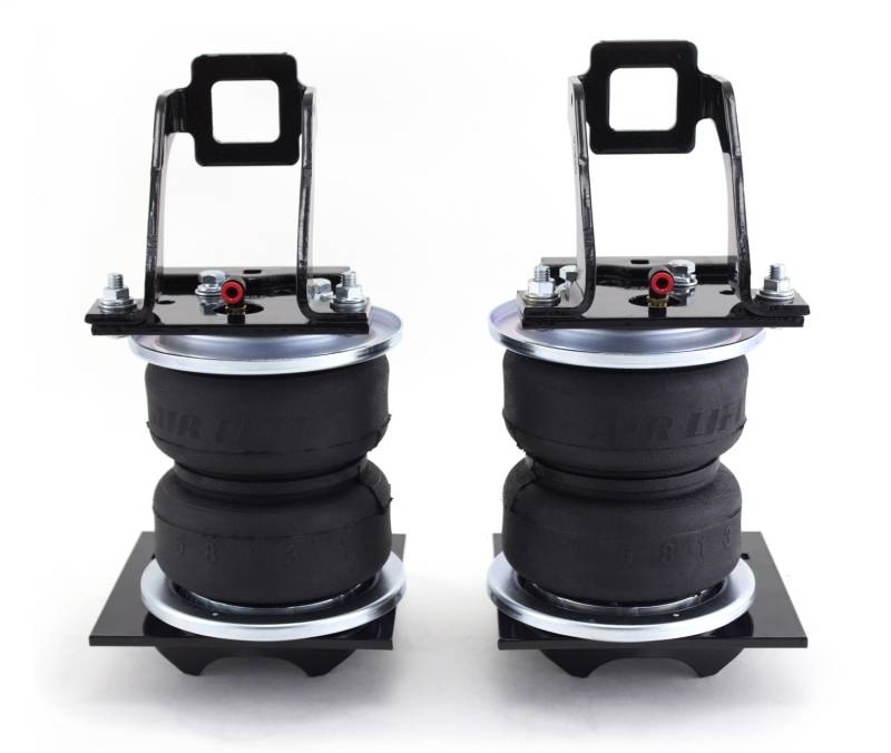 Air Lift adjustable air helper springs level your load, and give your truck, van, or SUV a safer, more comfortable ride. Air springs are easy to install between your existing springs and the vehicle frame. Just add air when towing or hauling a heavy load, and reduce air pressure when unloaded, they are fully adjustable for a great ride. Air Lift air springs eliminate sag, sway, and bottoming out. They are made with rugged, durable components for long, reliable service. LoadLifter 5000 kits are Air Lift's heaviest-rated kits for hauling or towing heavy loads. They have up to 5,000 pounds of leveling capacity, right up to the manufacturer's recommended Gross Vehicle Weight Rating, and are air adjustable from 5 to 100 PSI. LoadLifter 5000 kits fit such popular vehicles as ton and one-ton pickup trucks, many Class A, B & C motor homes, and commercial trucks and other severe uses. They also come standard with a limited lifetime warranty and an exclusive 60 day ride satisfaction guarantee.