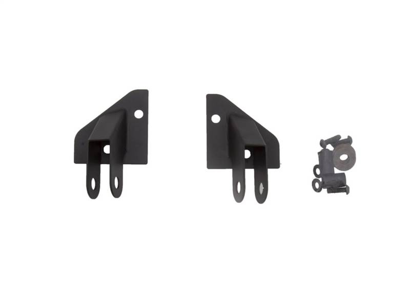 Mirror relocation brackets allows use of factory mirrors when the doors are removed. The brackets attach to windshield hinges using existing bolt holes with no drilling required. They are sold in pairs and come with a black finish.