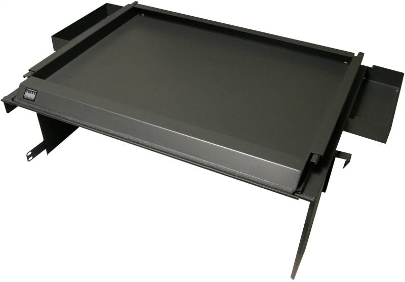 This security deck enclosure creates a large and lockable storage area completely protected on all sides. It works in conjunction with the vehicle rear door and lock (power lock switches become disabled after approximately 16 seconds when locking doors with the key fob). The lid easily hinges open and is secured shut using an innovative latching system. The lid and front can be easily removed without tools so larger items can be transported when required. The unique lid design is constructed from structural welded steel which incorporates a large weight bearing tray for organizing and transporting items on top. There are also two large trays on each side above the wheel well for addition storage and organization. Any items stowed on top of the enclosure must also be securely fastened to the vehicle. The entire Tuffy deck enclosure is constructed using welded 16 gauge steel, heavy duty fasteners, and finished with a durable textured powder coating.