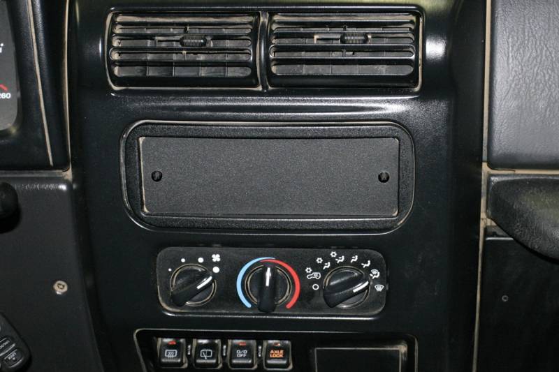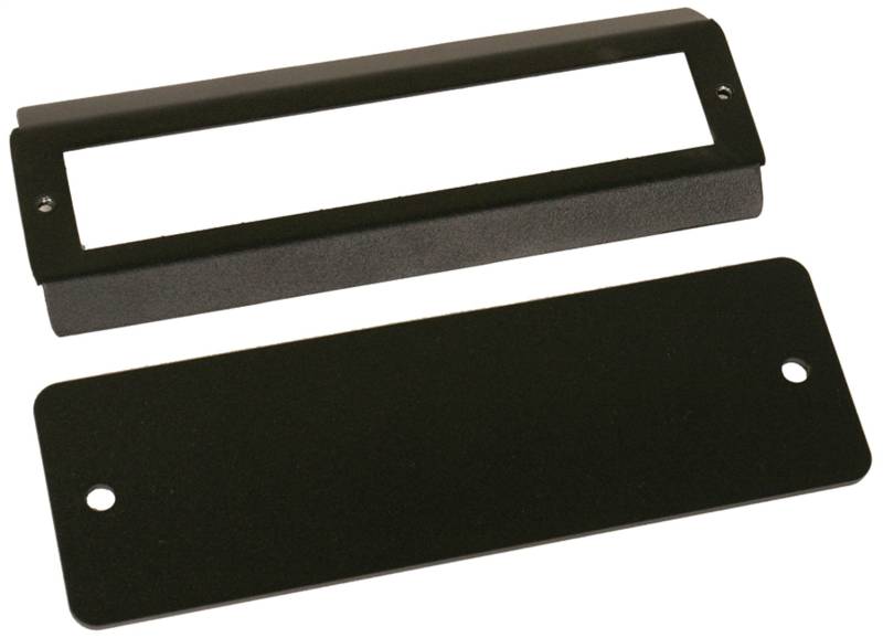 Cover the empty hole left in the dash after a stereo is removed with this cover. The plate can additionally be drilled for mounting switches. (Lights, lockers, air, etc.) Powder coated steel face plate and back tension plate. No drilling, just insert and tighten with the supplied fasteners.