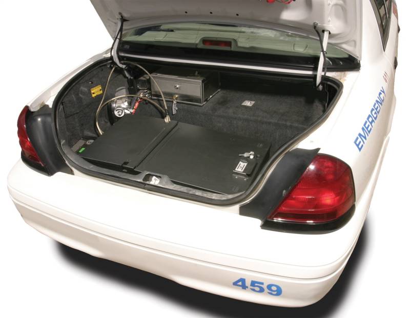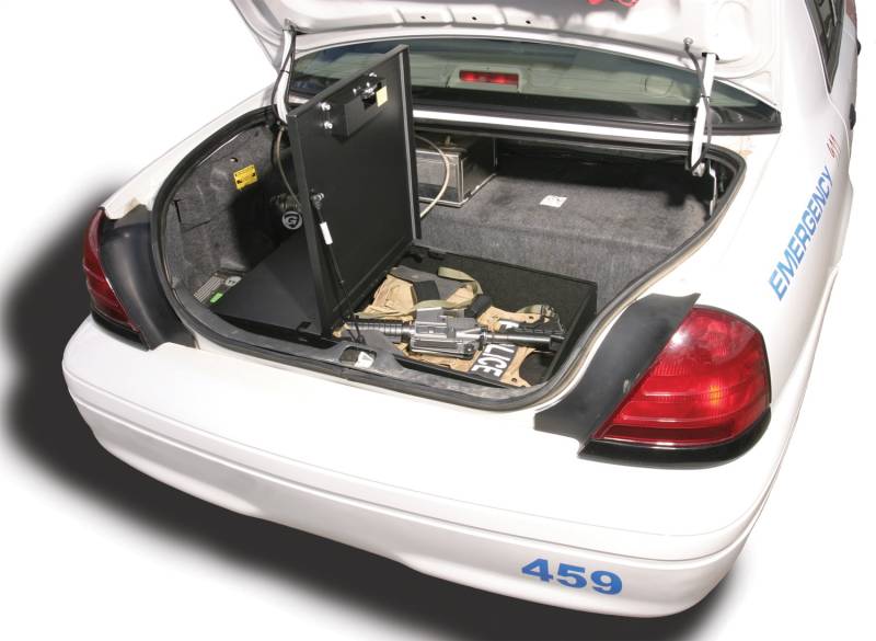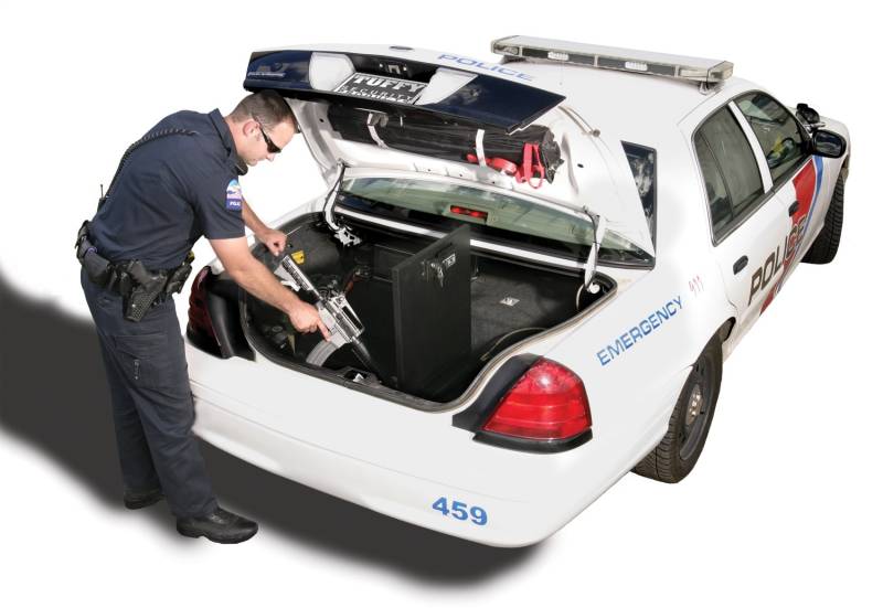 Tuffy's tactical lock-box is ideal for securing an 870 shotgun, M-4 rifle and officer body armor completely outfitted. The innovative design enables the lockbox to be secured to the vehicle by a cable-lock system (Patent rights reserved). This unique system does not require a separate padlock and can be released in seconds to transfer the lock-box between vehicles. Contents are secured by Tuffy's patented Pry-Guard II locking system.