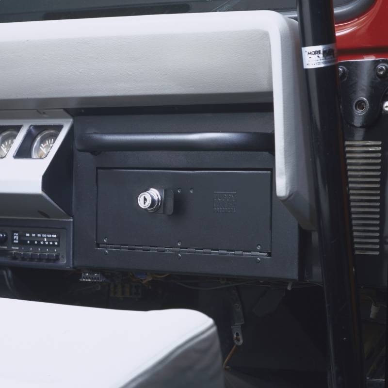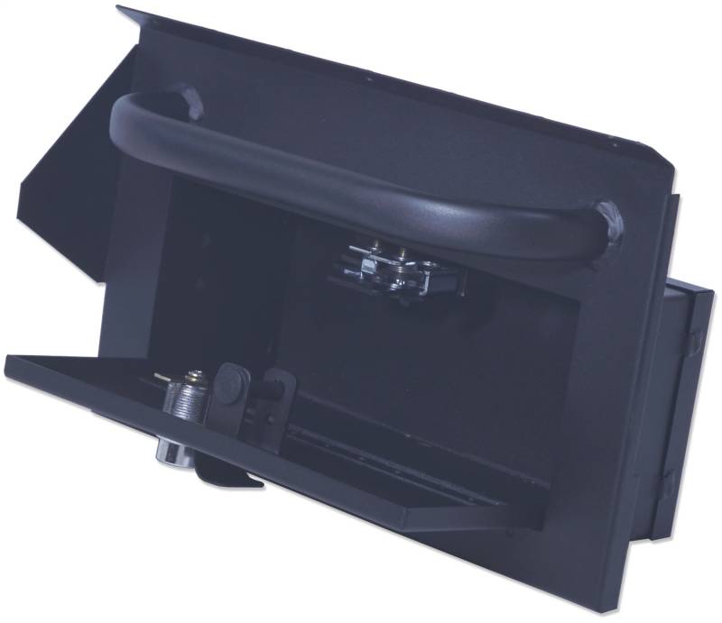 This steel, high security glove box is an ideal replacement for the plastic factory glove box. The glove box can be used to secure a number of smaller items. The grab handle is included. Tuffy's Patented latch system allows the glovebox to be latched shut without having to be locked and unlocked each time it is accessed.