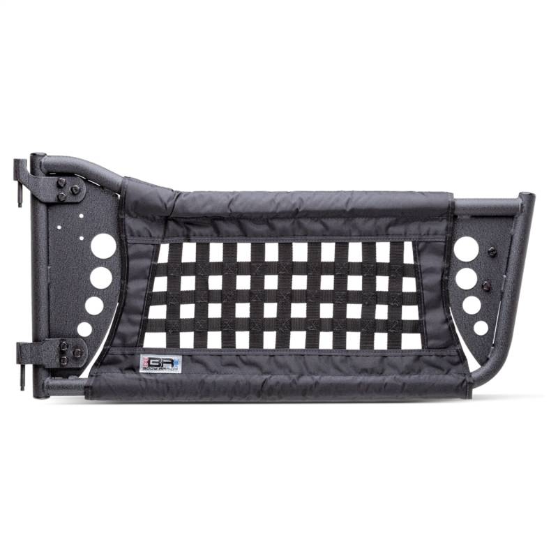 Body Armor Trail Doors, Steel, Powdercoated Black, Set of 2. With strong 1 in. wide, 1/8 in. thick woven nylon web door inserts for added protection from trail debris and additional padding for comfort. Made of durable steel tubing. Features exclusive steel plate gusset plates for style and strength and exclusive hidden internal latch mechanism designed for secure closure. Door height engineered for comfort. Simple installation, just take your factory doors off and slide the trail doors into the factory hinge. No need to modify the latch post. Pre-drilled for optional Body Armor 4x4 Mirrors.