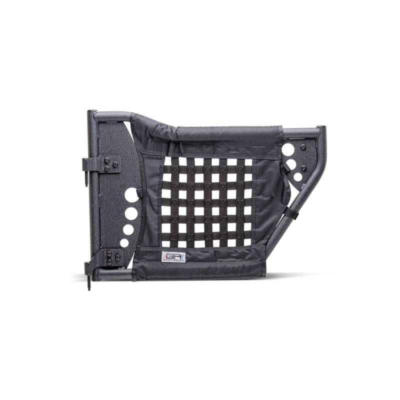Body Armor Trail Doors, Steel, Powdercoated Black, Set of 2. With strong 1 in. wide, 1/8 in. thick woven nylon web door inserts for added protection from trail debris and additional padding for comfort. Made of durable steel tubing. Features exclusive steel plate gusset plates for style and strength and exclusive hidden internal latch mechanism designed for secure closure. Door height engineered for comfort. Simple installation, just take your factory doors off and slide the trail doors into the factory hinge. No need to modify the latch post. Pre-drilled for optional Body Armor 4x4 Mirrors.