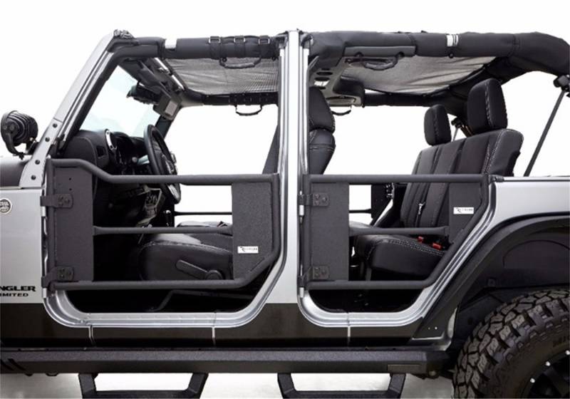 Get the feel of the trail while staying protected with Trail Doors from Rampage(TM) Products. Adventure-worth attributes included thick steel safari-style construction with a textured black powder coated finish, removable netting, and easy-to-open handles.Installs easily with adjustable hinge pins and latch plates. Net is included.