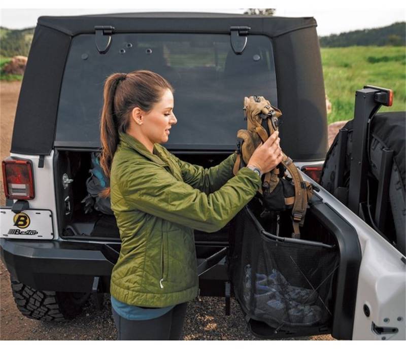 An easy-to-install, easy-to-use accessory every 2007-2018 Wrangler should have. Great for the trail, around town and especially tailgating at your favorite sporting event. Use the shelf to temporarily hold your coffee, tools or gear, even your laptop! The pop-up mesh crate works great for groceries, too! No-drilling installation takes just a few minutes. Once installed on the tailgate, push the release button and the shelf pops down, and the net pops up into place. And you can remove the mesh netting if you want for unemcumbered use of the shelf itself.
