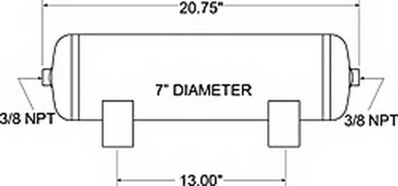 This Firestone air tank provides a source of compressed air for an air spring system. Tank has 3-gallon capacity and (2) 3/8 in. NPT ports. Tank is enamel coated to resist corrosion, tested to be SAE J10 compliant and capable of 150 psi. Features: Provides compressed air source for an air helper spring system Allows for faster inflation of air springs Holds 3 gallons of compressed air Includes (2) 3/8 in. NPT ports Steel tank with brass fittings Resists corrosion with internal and external enamel coating Is SAE J10 compliant Operates at up to 150 psi of maximum pressure Specs: Tank dimensions: 20.75 in. long x 7 in. diameter Tank capacity: 3 gallons Inflation ports: 3/8 in. NPT PSI: Maximum of 150 2-Year limited warranty