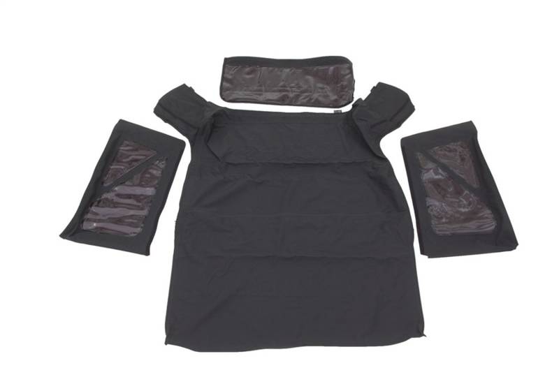 Replace your aging, worn out factory soft-top and gain some additional storage space inside the driving compartment. All the features of the original factory top with exclusive Rampage additions which includes two zippered storage pockets. Produced in original factory specifications and colors. The Rampage replacement top easily installs over factory framework, attaches to factory mounting points and Original Equipment belt rail attachment System. Fits all factory applications. For half door applications only.