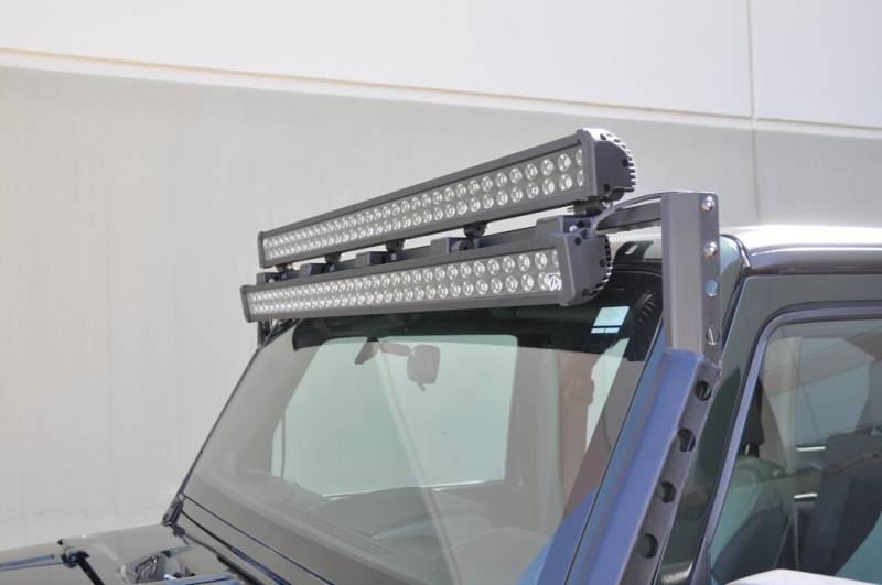 DV8 Offroad Textured Black Steel windshield mount Double Light Bar, top mount. Holds 2 50-52" led light bars or mix of individuals lights. For 2007 - 2015 Jeep Wranglers all models. Easy installation, no modifications needed, hardware included.