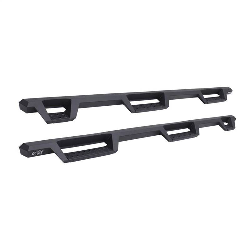 Westins HDX Drop Wheel-to-Wheel Nerf Step Bars feature a notched bar design with a 3rd step location for easy bed access. They provide strong traction with over 2 inches more of toe/heel step area than our Westin's HDX Drop W2W Nerf Step Bars include an added 3rd step location for easier bed area and cargo access. HDX also boasts more than 2 inches of added toe/heel step area which far exceeds all other competitive brands. HDX's notched bar design construction results in a reliable long lasting Bar, with a solid fit and a rugged look. The added length of HDX Drop Wheel-to-wheel Nerf Step Bars provides users with better cab access and better footing and traction for both drivers and passengers. Product includes mount kit and is offered in a variety of vehicle specific applications. Bolt-on installation so no drilling required. Mount kit included. Westin's exclusive Isolator Bracket supports the step bar past the truck cab, a feature that competitors do not offer. Without an Isolator Bracket, the step area that extends past the vehicle is left unsupported. Our unique design provides extra bed support without resulting in annoying creaking sounds.