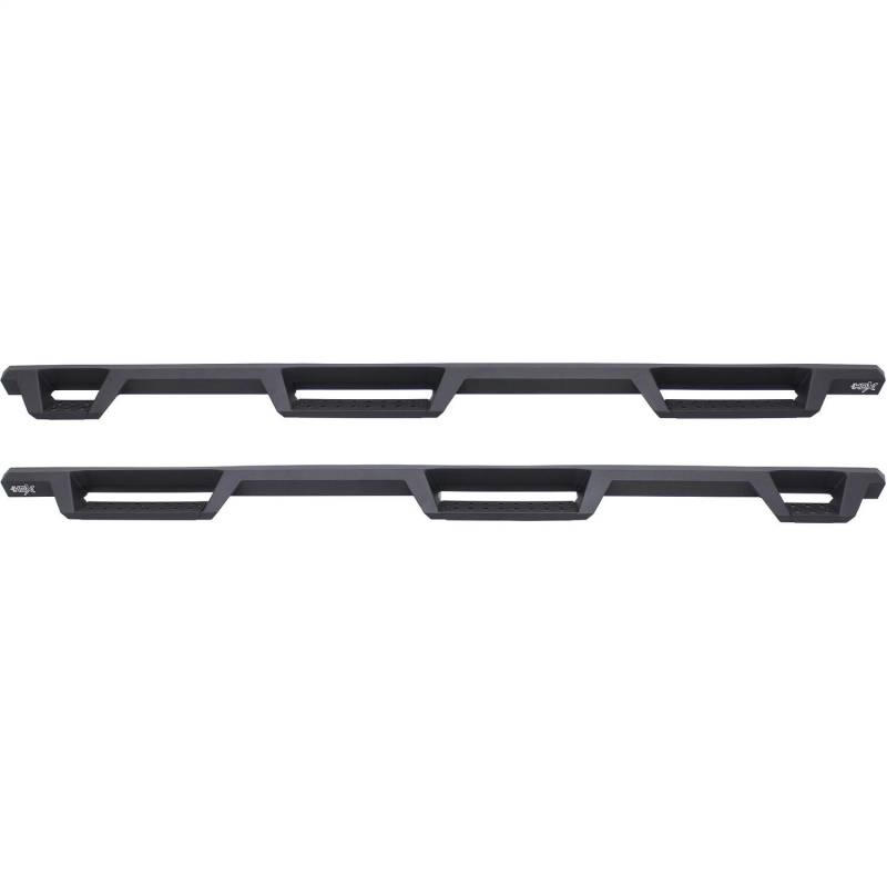Westins HDX Drop Wheel-to-Wheel Nerf Step Bars feature a notched bar design with a 3rd step location for easy bed access. They provide strong traction with over 2 inches more of toe/heel step area than our Westin's HDX Drop W2W Nerf Step Bars include an added 3rd step location for easier bed area and cargo access. HDX also boasts more than 2 inches of added toe/heel step area which far exceeds all other competitive brands. HDX's notched bar design construction results in a reliable long lasting Bar, with a solid fit and a rugged look. The added length of HDX Drop Wheel-to-wheel Nerf Step Bars provides users with better cab access and better footing and traction for both drivers and passengers. Product includes mount kit and is offered in a variety of vehicle specific applications. Bolt-on installation so no drilling required. Mount kit included. Westin's exclusive Isolator Bracket supports the step bar past the truck cab, a feature that competitors do not offer. Without an Isolator Bracket, the step area that extends past the vehicle is left unsupported. Our unique design provides extra bed support without resulting in annoying creaking sounds.