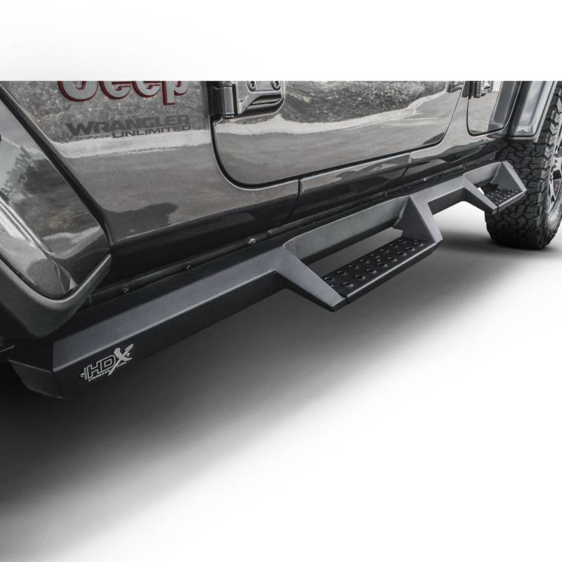 Westins HDX Drop Nerf Step Bars provide the rugged look and function that truck owners need and want. They feature a solid 1-piece steel construction and heavy duty punch plates creating high traction step areas. The HDX Drop Nerf Step Bars also feature Westins notched bar design which provides more than 2in. of additional toe/heel placement versus competitive brands. Available in a textured black finish that complements Westin HDX Bumpers. The HDX Drop Steps have vehicle specific applications and include a vehicle specific mount kit, installation hardware and instructions.