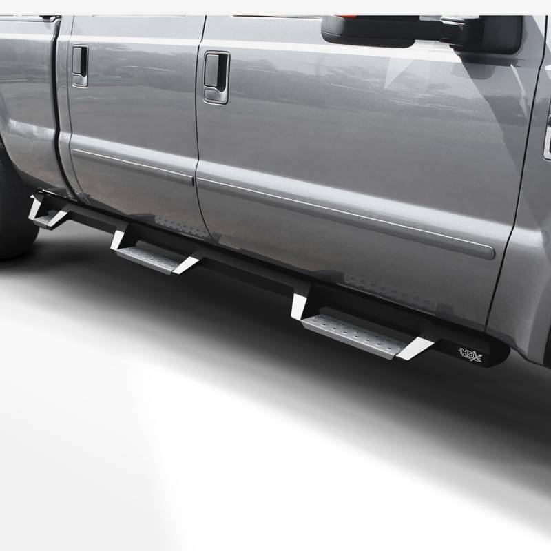 Westin's HDX Stainless Drop W2W Nerf Step Bars are built with corrosion-resistant, textured black painted stainless steel designed to last under the toughest of conditions. Built with 1-piece construction, these Nerf Step Bars feature a notched bar design with a 3rd step location for easy bed access and provide over 2 more inches of toe/heel step area than our competitors. The longer length of our HDX Stainless Drop WTW Nerf Step Bars provides added vehicle accessability, with the bar still fitting tight to your vehicle's rocker panel for a solid fit and rugged look. Product includes a set of installed stainless steel step pads as well as a set of black mild steel step pads so you can switch plates out based on preference. Step plates are rust resistant and provide maximum traction. Bolt-on installation so no drilling is required. Includes Mount Kit. Westin's exclusive Isolator Bracket supports the step bar past the truck cab, a feature that competitors do not offer. Without an Isolator Bracket, the step area that extends past the vehicle is left unsupported. Our unique design provides extra bed support without resulting in annoying creaking sounds.