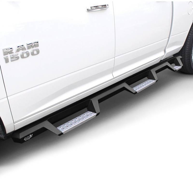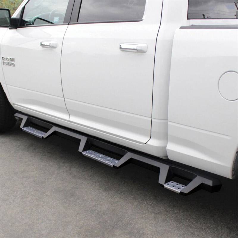 Westin's HDX Stainless Drop W2W Nerf Step Bars are built with corrosion-resistant, textured black painted stainless steel designed to last under the toughest of conditions. Built with 1-piece construction, these Nerf Step Bars feature a notched bar design with a 3rd step location for easy bed access and provide over 2 more inches of toe/heel step area than our competitors. The longer length of our HDX Stainless Drop WTW Nerf Step Bars provides added vehicle accessability, with the bar still fitting tight to your vehicle's rocker panel for a solid fit and rugged look. Product includes a set of installed stainless steel step pads as well as a set of black mild steel step pads so you can switch plates out based on preference. Step plates are rust resistant and provide maximum traction. Bolt-on installation so no drilling is required. Includes Mount Kit. Westin's exclusive Isolator Bracket supports the step bar past the truck cab, a feature that competitors do not offer. Without an Isolator Bracket, the step area that extends past the vehicle is left unsupported. Our unique design provides extra bed support without resulting in annoying creaking sounds.