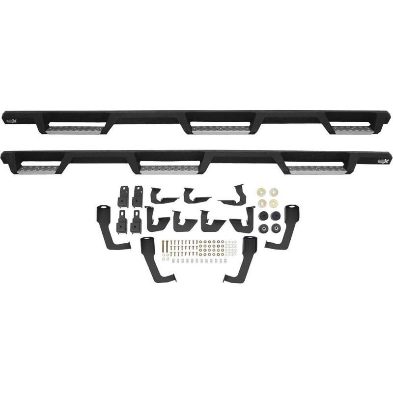 Westin's HDX Stainless Drop W2W Nerf Step Bars are built with corrosion-resistant, textured black painted stainless steel designed to last under the toughest of conditions. Built with 1-piece construction, these Nerf Step Bars feature a notched bar design with a 3rd step location for easy bed access and provide over 2 more inches of toe/heel step area than our competitors. The longer length of our HDX Stainless Drop WTW Nerf Step Bars provides added vehicle accessability, with the bar still fitting tight to your vehicle's rocker panel for a solid fit and rugged look. Product includes a set of installed stainless steel step pads as well as a set of black mild steel step pads so you can switch plates out based on preference. Step plates are rust resistant and provide maximum traction. Bolt-on installation so no drilling is required. Includes Mount Kit. Westin's exclusive Isolator Bracket supports the step bar past the truck cab, a feature that competitors do not offer. Without an Isolator Bracket, the step area that extends past the vehicle is left unsupported. Our unique design provides extra bed support without resulting in annoying creaking sounds.