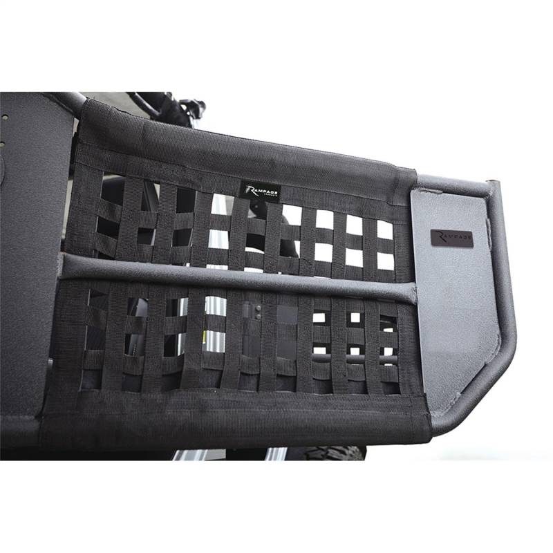 Get the feel of the trail while staying protected with Trail Doors from Rampage(TM) Products. Adventure-worth attributes included thick steel safari-style construction with a textured black powder coated finish, removable netting, and easy-to-open handles. Installs easily with adjustable hinge pins and latch plates.