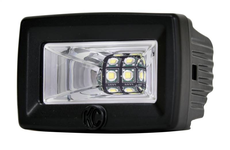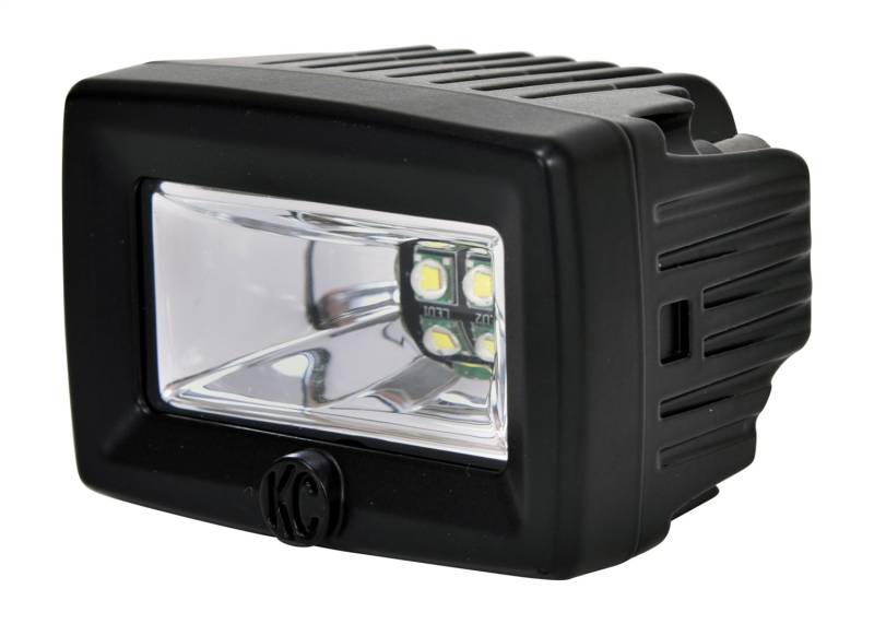 FEATURES-20W 2 in. C2 LED Area Flood Light-Durable Diecast 6063 Aluminum Housing-UV Resistant Black Powder Coated Housing-Dual Oversized Heat Sink Design for Cooler, Brighter and Longer Lasting LED Performance-Gore Military Grade Breather Membrane to prevent condensation and entry of dust/contaminants-Optically Clear and Shatter Proof Lexan Lens-Ideal for Illuminating Immediate Areas as a Scene, Work or Effective Flood light-120 Scene Beam Pattern For Evenly Distributed LightingLIGHT PERFORMANCE(PER LIGHT)-RAW Lumens: 2,200 lm-LUX @ 10 meters: 27 lx-Candela: 2,700 cd-Beam Distance (Meters): 104mSPECIFICATIONS(PER LIGHT)-Wattage: 20W-LED Source: CREE XMK-LED Color: 6000K-Amp Draw: 1.6A-Voltage: 9V-36V-IP Rating: IP69K-Product Dimensions: W - 2.85 in. x H - 2.21/1.91 in. x D - 2.17 in.OPTICAL PERFORMANCE AND LED EFFICIENCYKC's C2 utilizes ultra wide 120 degree flood reflector optics to provide smooth and evenly distributed light across a horizontal field of vision. This light is ideal for illuminating immediate areas as a work or scene light, dramatically improving night time safety and visibility.DURABLE CONSTRUCTION FOR RELIABLE LIGHT PERFORMANCEConstructed from a lightweight military grade (US MIL-810-STD) IP69K rated sealed Aluminum Die-Cast Housing with shatter proof GE Lexan lens for an impenetrable, waterproof housing.The C2 scene light was built to last, utilizing advanced Dual Heat-Sink design for maximum heat dissipation to ensure optimum light performance for up to 50,000 hours.