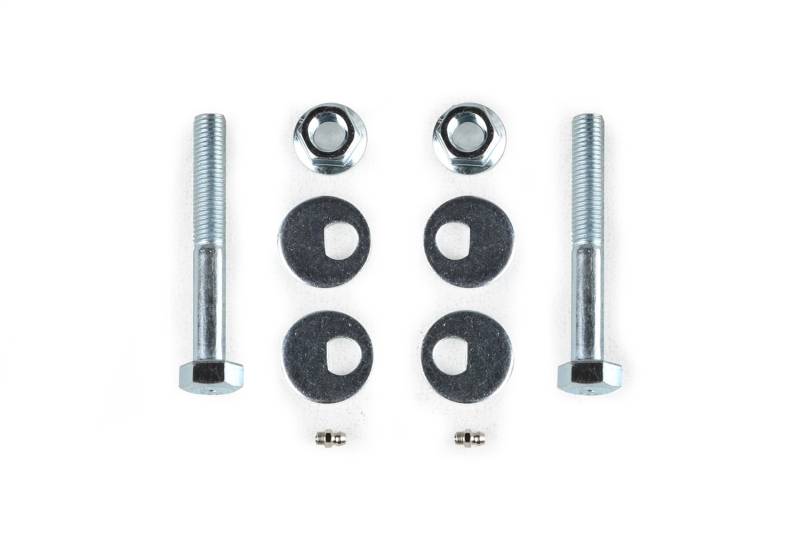 These eccentric alignment cams locate on the lower front link arms for an additional 2 degrees of adjustment compared to stock. This will aid in aligning the front suspension of the vehicle for use with lifted suspensions and oversized tires. All steel construction with zinc coating for corrosion resistance.
