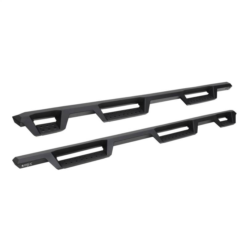 Westins HDX Drop Wheel-to-Wheel Nerf Step Bars feature a notched bar design with a 3rd step location for easy bed access. They provide strong traction with over 2 inches more of toe/heel step area than our Westin's HDX Drop W2W Nerf Step Bars include an added 3rd step location for easier bed area and cargo access. HDX also boasts more than 2 inches of added toe/heel step area which far exceeds all other competitive brands. HDX's notched bar design construction results in a reliable long lasting Bar, with a solid fit and a rugged look. The added length of HDX Drop Wheel-to-wheel Nerf Step Bars provides users with better cab access and better footing and traction for both drivers and passengers. Product includes mount kit and is offered in a variety of vehicle specific applications. Bolt-on installation so no drilling required. Mount kit included. Westin's exclusive Isolator Bracket supports the step bar past the truck cab, a feature that competitors do not offer. Without an Isolator Bracket, the step area that extends past the vehicle is left unsupported. Our unique design provides extra bed support without resulting in annoying creaking sounds.