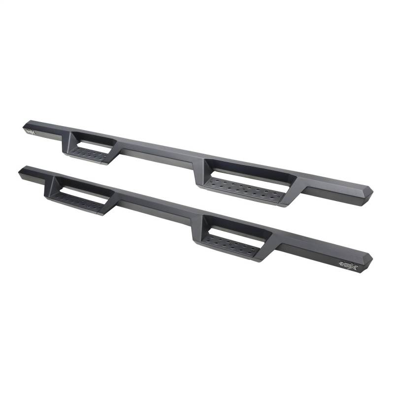 Westins HDX Drop Nerf Step Bars provide the rugged look and function that truck owners need and want. They feature a solid 1-piece steel construction and heavy duty punch plates creating high traction step areas. The HDX Drop Nerf Step Bars also feature Westins notched bar design which provides more than 2in. of additional toe/heel placement versus competitive brands. Available in a textured black finish that complements Westin HDX Bumpers. The HDX Drop Steps have vehicle specific applications and include a vehicle specific mount kit, installation hardware and instructions.