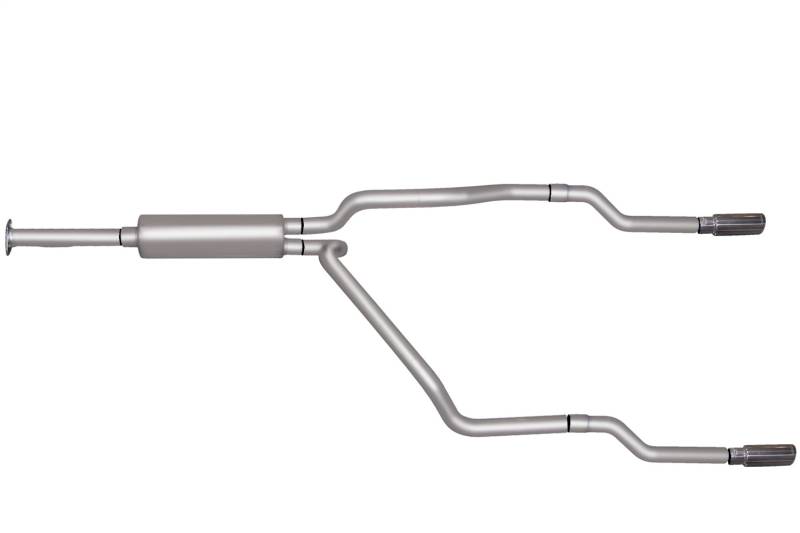 For the enthusiast who wants an awesome look and aggressive throaty sound this Dual Split Cat back exhaust is for you. Gibson Exhaust Systems decrease backpressure and produce more torque and increased horsepower. Typical gains average of 15-20 horsepower. Stainless dual Tip exit straight out the back. Works with most bumpers, roll pans and trailer hitches. Exhaust sound is louder under towing conditions. Hassle Free bolt- on installation. No welding required. Backed by a Lifetime Limited Warranty.