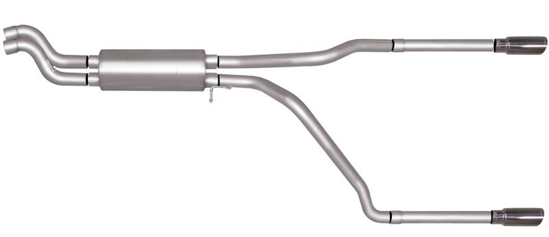 For the enthusiast who wants an awesome look and aggressive throaty sound this Dual Split Cat back exhaust is for you. Gibson Exhaust Systems decrease backpressure and produce more torque and increased horsepower. Typical gains average of 15-20 horsepower. Stainless dual Tip exit straight out the back. Works with most bumpers, roll pans and trailer hitches. Exhaust sound is louder under towing conditions. Hassle Free bolt- on installation. No welding required. Backed by a Lifetime Limited Warranty.