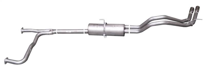 If youre looking to add a little style to your Truck or SUV and want to keep the exhaust from affecting your tow trailer, this Dual Cat back Exhaust System is for you, exiting behind the rear tire for a look that sets your vehicle apart on the street or in the dirt. Hassle free, bolt-on installation with professional looking results. No welding required. Backed by a Lifetime Limited Warranty. Gibson dual sport exhaust offers a powerful authoritative deep exhaust tone with no annoying noise inside the cab. Dyno tested to assure increased horsepower and produce more torque. Average horsepower gains are 10-15 and 15-20lb-ft of increase torque.