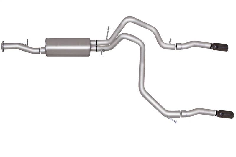 For the enthusiast who wants an awesome look and aggressive throaty sound this Dual Split Cat back exhaust is for you. Gibson Exhaust Systems decrease backpressure and produce more torque and increased horsepower. Typical gains average of 15-20 horsepower. Stainless dual Tip exit straight out the back. Works with most bumpers, roll pans and trailer hitches. Exhaust sound is louder under towing conditions. Hassle Free bolt- on installation. No welding required. Backed by a Lifetime Limited Warranty.