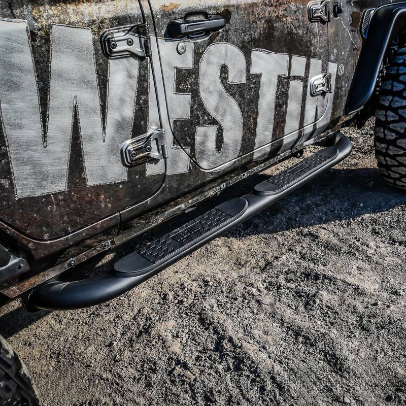 Westins Platinum 4 Oval Nerf Step Bars feature OE styling and offer an alternative look and style to traditional round tube steps. Their larger size provides strength and confidence with a full 4in. wide recessed step area. Platinum 4 Oval Nerf Step Bars are vehicle specific applications that feature a no-drill installation.