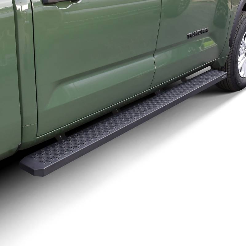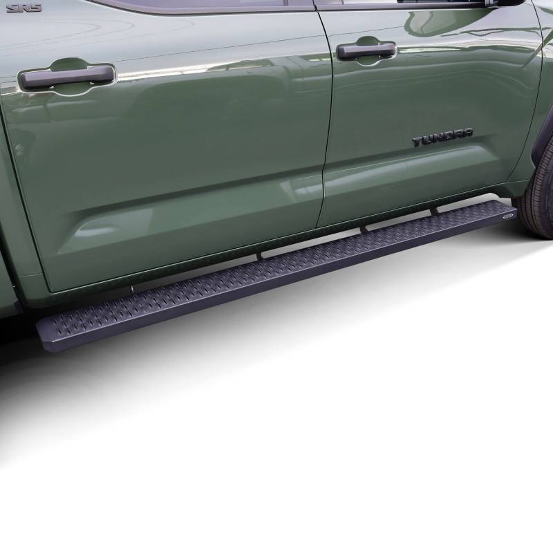Westins Grate Steps Running Boards are engineered to provide maximum traction without sacrificing style. The 6 1/4in. step surface width features an aggressive 1/4in. high punched tread allowing traction in any weather condition. The unique serrated edges help clean dirt, snow and mud off your boots to keep truck cab clean. Grate Steps Running Boards feature stylishly formed and fully welded ends with a custom die-cast riveted logo badge. E-coated base coat provides long lasting corrosion protection which far surpasses that of the competition. Solid 1-piece construction makes the Grate Steps Running Boards ideal for construction, commercial, vans and utility use. Available in universal lengths (54in., 68in., 75in., 79in., 83in., 86in. and 90in.) with vehicle specific mount kit required, sold separately. Available in textured black finish.