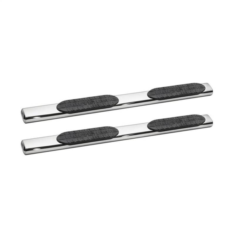 Westin PRO TRAXX 6 for full-sized trucks are cab-length steps for ideal functionality and cab access. They feature extra heavy-duty bold step pads and a unique oval tube shape in a straight tube design. Applications are vehicle specific bolt-on, no-drill and rocker panel mounted. Available in polished stainless steel, backed by a lifetime warranty, and black powder coated mild steel, backed by a 3 year warranty.
