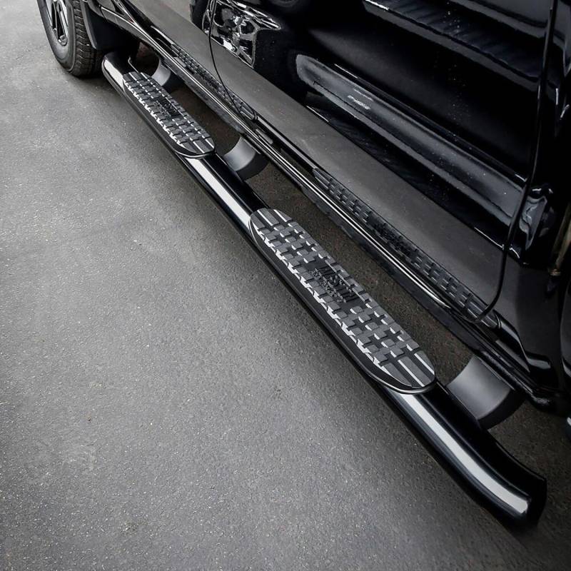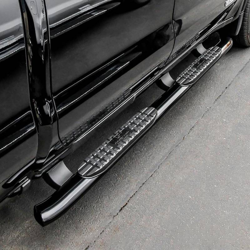 Westins Pro Traxx 4 Oval Nerf Step Bars feature a 4in. oval tube with a heavy-duty step pad that provides a wider and more secure step area. They feature 30 factory style bends that have seamless domed ends so there are no end-caps or exposed bolt heads. Applications are bolt-on installation.