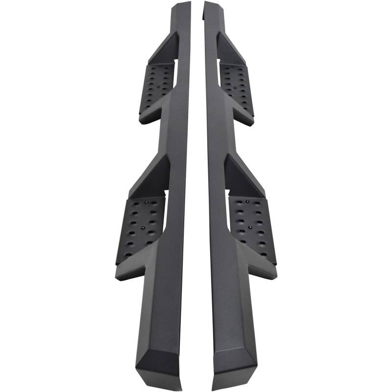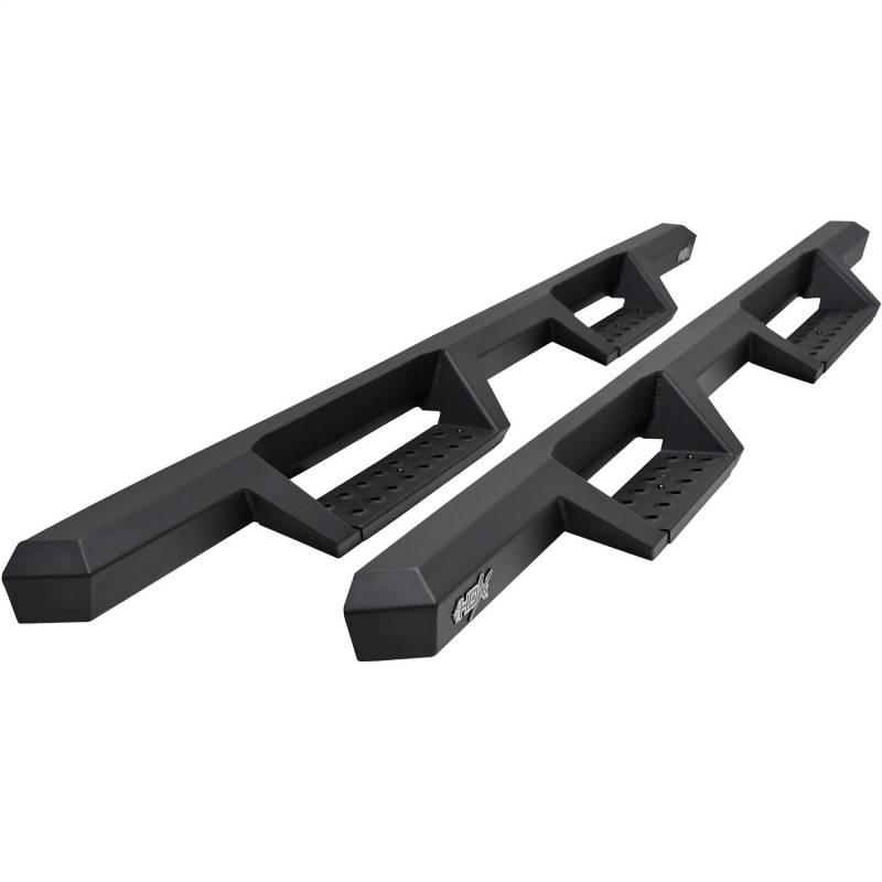 Westins HDX Drop Nerf Step Bars provide the rugged look and function that truck owners need and want. They feature a solid 1-piece steel construction and heavy duty punch plates creating high traction step areas. The HDX Drop Nerf Step Bars also feature Westins notched bar design which provides more than 2in. of additional toe/heel placement versus competitive brands. Available in a textured black finish that complements Westin HDX Bumpers. The HDX Drop Steps have vehicle specific applications and include a vehicle specific mount kit, installation hardware and instructions.