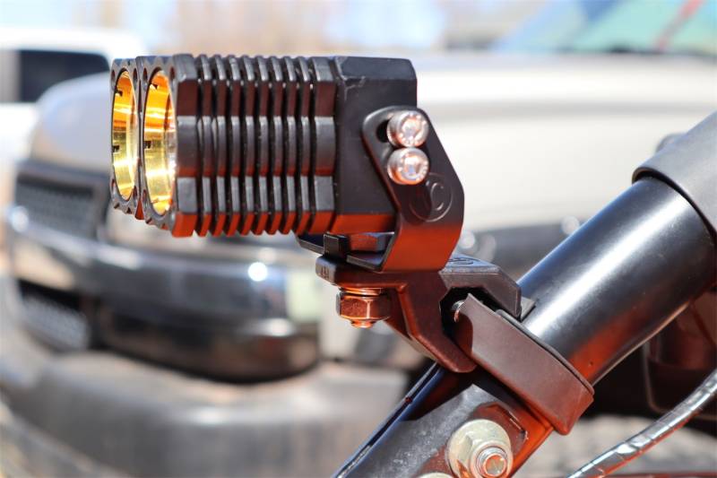 MOUNT LIGHTS EASILY TO ANGLED TUBULAR SURFACES. KC MTZ 40° universal tube clamp mounts allow you to easily mount lights and accessories directly to angled light bars, roll cages, roof racks, and more. KC angled tube clamp mounts provide a flat mounting point along angled surfaces to help you securely attach and aim lights to meet all of your lighting needs. EASY ADJUSTABLE UNIVERSAL MOUNTIN. KC MTZ universal tube clamp mounts feature easy to use adjustable worm gear to accommodate 1.5 in. - 2.0 in. round diameters. KC has made the trouble of find a specific size mount, by giving you the ability to adjust our mounts to work for most common tube diameters.DESIGN AND CONSTRUCTION. KC MTZ universal tube clamp mounts are constructed from a highly durable, lightweight Carbon Reinforced Plastic material ensuring they stand up to the test for years to come.