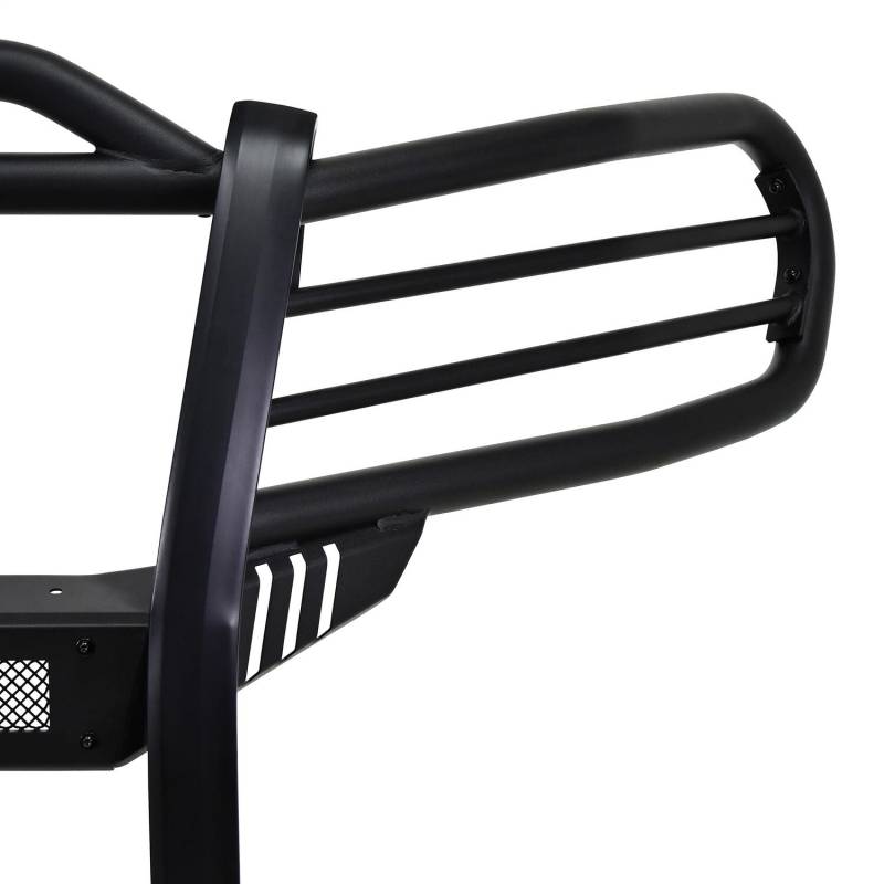 Westins Sportsman X Grille Guard effectively combines aggressive styling with heavy duty front end protection. Engineered to provide both great looks and performance, Sportsman Xs unique design compliments todays larger grille designs, and is available to fit most full and mid size truck applications. Sportsman X has an optional detachable mesh panel (sold separately) which is specifically designed to fit the opening in the center section of Sportsman X Grille Guard, or can be removed to accommodate the flush mounted 26in. dual row LED light bar (sold separately). A smaller removable mesh panel designed for the factory sensor location opening is included as standard with Sportsman X. For specific Chevy and Dodge/RAM applications a Sportsman X Sensor Kit (sold separately) is available. An exterior step plate is located on the 1-5/8in. bottom tube to provide easy access to the engine compartment. Built with heavy duty 2-1/4in. upright rubber strips and 1- 5/8in. outer tubes, Sportsman X Grille Guard is designed to provide protection and style for years to come.