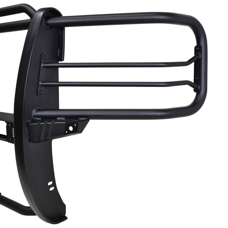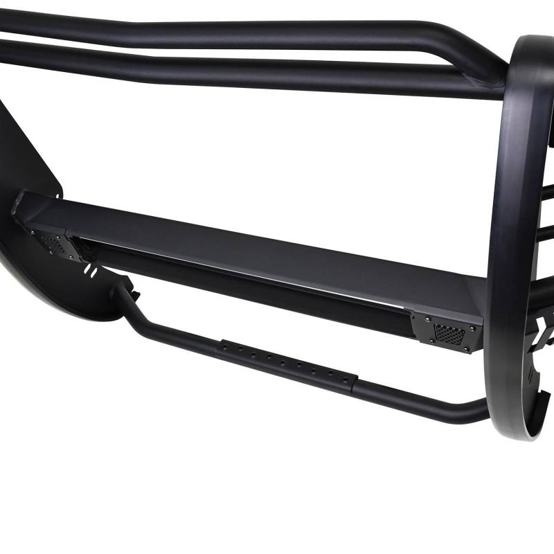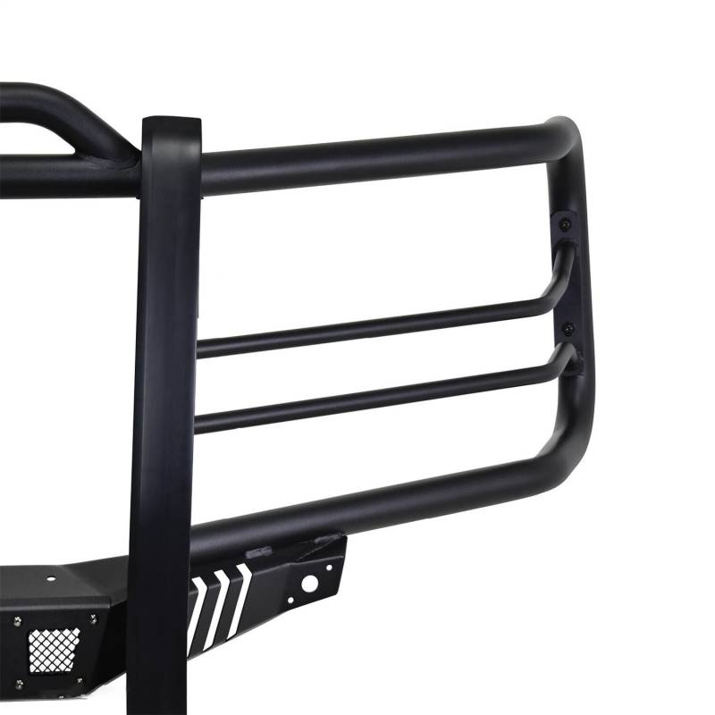 Westins Sportsman X Grille Guard effectively combines aggressive styling with heavy duty front end protection. Engineered to provide both great looks and performance, Sportsman Xs unique design compliments todays larger grille designs, and is available to fit most full and mid size truck applications. Sportsman X has an optional detachable mesh panel (sold separately) which is specifically designed to fit the opening in the center section of Sportsman X Grille Guard, or can be removed to accommodate the flush mounted 26in. dual row LED light bar (sold separately). A smaller removable mesh panel designed for the factory sensor location opening is included as standard with Sportsman X. For specific Chevy and Dodge/RAM applications a Sportsman X Sensor Kit (sold separately) is available. An exterior step plate is located on the 1-5/8in. bottom tube to provide easy access to the engine compartment. Built with heavy duty 2-1/4in. upright rubber strips and 1- 5/8in. outer tubes, Sportsman X Grille Guard is designed to provide protection and style for years to come.
