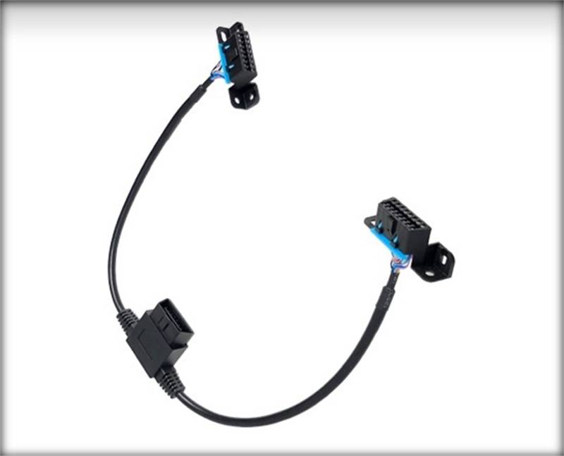 The OBDII Pass-Through Splitter allows two products to be simultaneously plugged into the OBDII port at the same time. The OBDII pass-through gives the ability to connect two products, such as an Edge CTS2 unit, and another product, including, but not limited to, power running boards or custom tuning devices. This new OBDII splitter is fully populated with a 16-pin pass-through, pinned connector. Using this new OBDII splitter, along with the new update for the Edge Insight CTS2, users can operate the Insight monitor in one port and other devices on the other port.